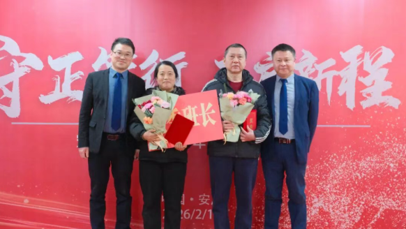 2026年2月11日,安科月博药业有限公司2025年度总结暨表彰大会在安庆召开。 会议以“守正笃行 再启新程”为主题,全面回顾过去一年的奋斗足迹,隆重表彰先进典型。同时,大会对新一年发展作出战略部署,为企业高质量发展注入强劲动能。集团副董事长、月博董事长周源源,集团运营总监汪永斌,集团财务总监胡成浩等领导出席大会。
