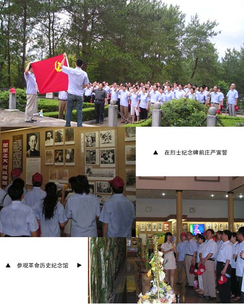 大家来到我市著名的革命老区岳西县,参观了革命历史纪念馆,回顾了以我党首任安徽省委书记王步文等一批先烈们,为共产主义事业所作出的卓著贡献。公司党政领导共同向烈士纪念碑敬献了花篮,全体党员在苍松翠柏间,在烈士们的英灵前再度庄严宣誓:为共产主义事业奋斗终身!