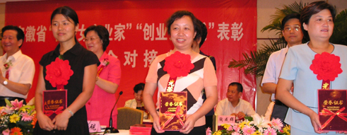 为贯彻落实省委省政府“全民创业行动”号召,推动“百万妇女创业行动”实施,全省广大妇女积极投身经济建设主战场,涌现出一大批懂经营、善管理、高素质的优秀女性经营管理者。为表彰先进树立典型、激励全省广大妇女为安徽奋力崛起建功立业。省妇联、省经委等单位联合决议,对先进妇女代表进行表彰。我公司总经理谢红星被授予“创业女标兵”这一光荣称号。