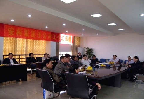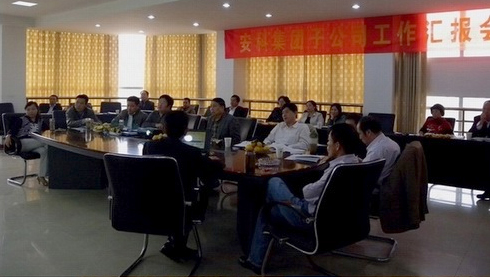 2010年10月20日,安科集团子公司工作汇报会在安科月博药业三楼会议室召开。集团公司董事长兼总经理宋礼华先生、副总经理姚建平先生、财务总监何云南先生及各子公司高管层出席了本次会议。会议主要听取各子公司2010年前三季度的工作总结以及第四季度任务指标完成计划。