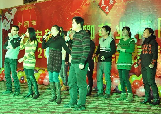 大会最后一部分是新春联欢晚会。公司各个部门带来了精彩的节目。包装女工们美丽的印度舞、平时严谨的财务部员工搞笑的三句半,销售部姑娘献上的青春舞曲、橡胶膏车间的精彩大合唱……平日里这些忙碌的身影道出的是辛劳是奉献,今天,欢乐的笑脸诉说的是激情与希望。