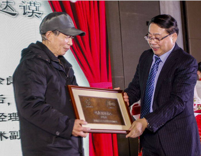 在传承篇中,公司将为本次庆典特别制作的传承篇赠送给了三位月博号代表性传承人:月博号第五代店主余达谟先生、历任安庆月博制药厂书记的徐嘉惠先生,以及在月博工作整整33年的现任安科月博药业常务副总经理谢红星女士。
