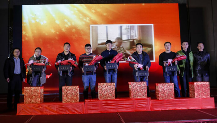 月博作为一个老字号的企业,发展到今天的成绩,与很多支持帮助月博发展的人们是密不可分的。这其中既有月博广大员工,也有携手多年的合作伙伴。在感恩篇中,大会共邀请了8位老员工代表和41家商业合作伙伴代表上台,接受月博的特别赠礼——铜鼎。49座铜鼎,代表了月博人深深的感恩之情、感激之情。月博感谢在场的所有嘉宾多年来的鼎力相助。