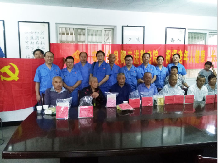 宜秀区大枫敬老院是第一支部的目的地。16名一支部党员刚刚到达,就受到了区民政局、乡分管领导的热情迎接。座谈会上,领导们对月博“精工良药 福泽百姓”的企业信条和社会责任感赞叹不已。院长代表所有老人感谢慰问组夏日里送来清凉。当党员们将防暑慰问品递到老人们的手中时,每个人的脸上都泛起真挚的笑容,暖暖的情意顿时笼罩在每个人的心头。