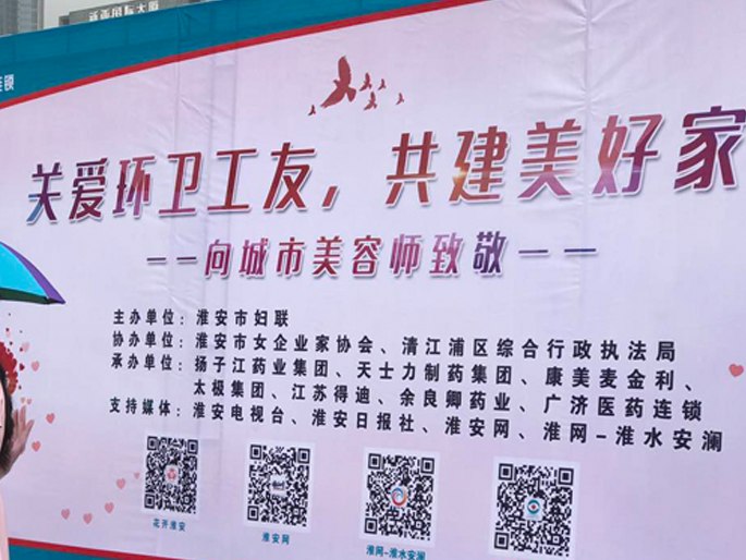 由淮安市妇联主办,扬子江药业、天士力制药、安科月博药业、太极集团、广济医药连锁等共同承办的“关爱环卫工友 共建美好家园 向城市美容师致敬”捐赠仪式于当日上午九时在大运河广场举行,活动为奋斗在城市卫生秩序管理一线的环卫工友们、行政执法队员们送上夏日的关怀与问候。安科月博在此次活动中共捐赠夏季防暑用品600份。苏北地区业务员在活动现场展示的公司热销产品吸引了众多群众前来咨询、试用。