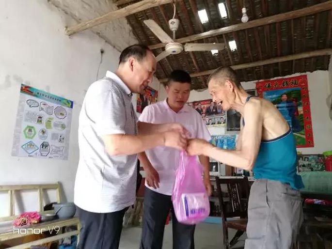 8月13日,安科月博公司总经理严新文率管理团队冒着大雨下乡,陪同陈冰冰市长及组织部、扶贫办等部门领导前往贫困户家庭走访慰问。
