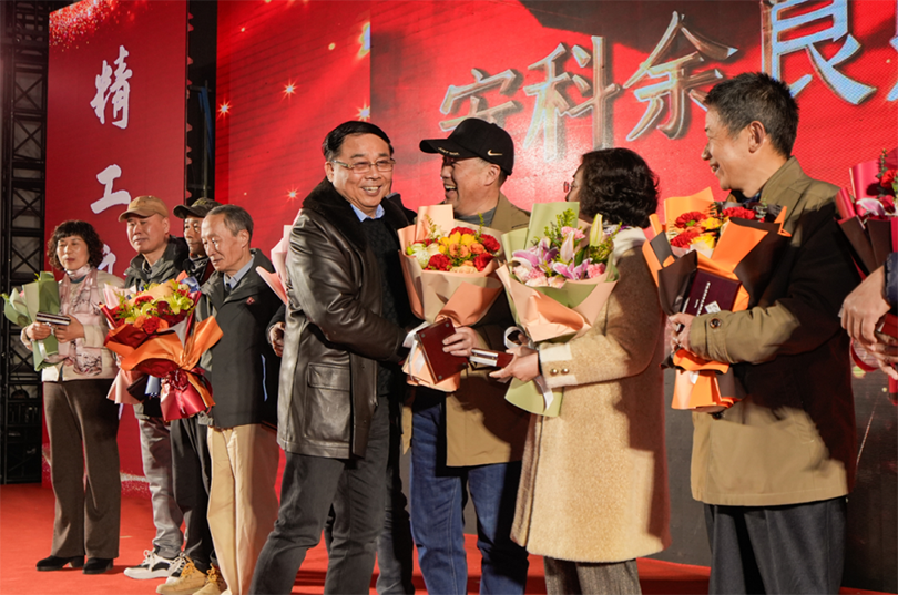 总经理鲍学科上台逐一为退休人员颁授纪念奖牌和鲜花,董事长宋礼华与每一位退休员工握手拥抱,并合影留念。在感动与不舍中,在温情与掌声中,荣休仪式落下帷幕。